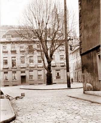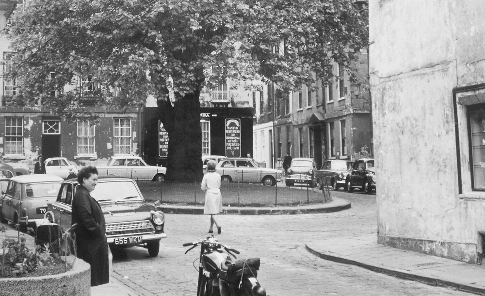 view of Abbey Green in 1785 and the same view today. Mignon House (no. 9) has