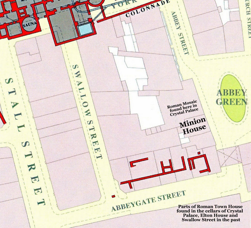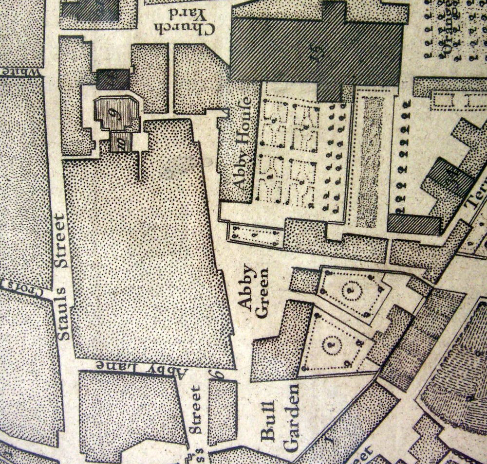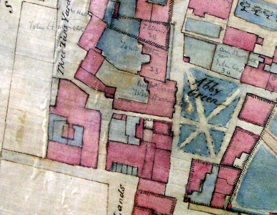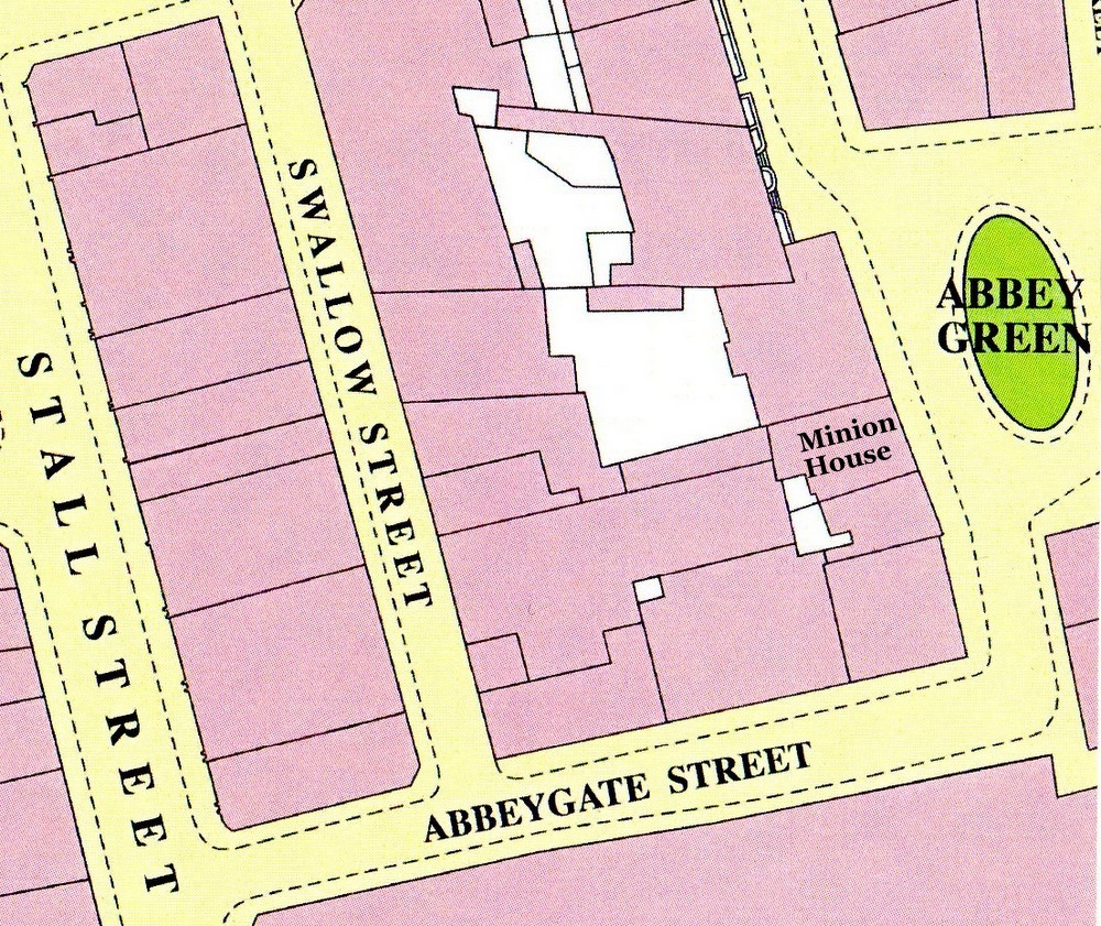 Harcourt Masters Map of Abbey Green 1795. This shows that Minion House has lost the passage way through it. It is shown passing through the neighbouring building (now the Crystal Palace). |