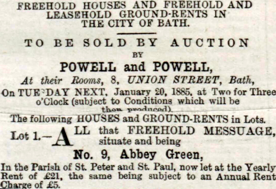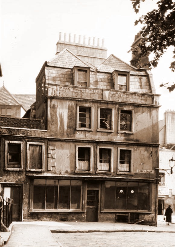 In September 1780 John Brabant, whose wife inherited 9 Abbey Green is shown to let the property, which is described has having 17 rooms with access to the passage that went to the side of the building linking the Three Tuns in Stall Strret with Abbey Green. the small side window would have once been its entrance. |