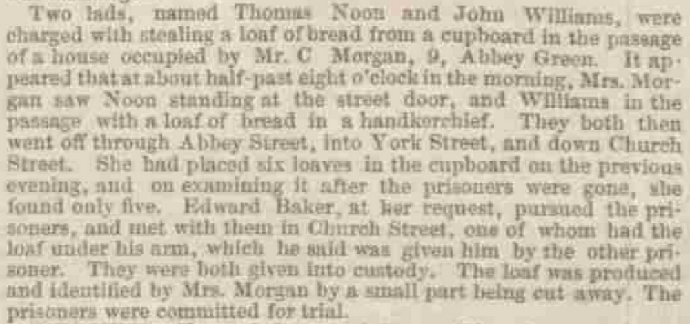 | The 1841 Census shows Charles Morgan, a Jeweller, living at 9 Abbey Green with his wife, Eliza and daughter Mary Ann and son Alfred. | ||||||||||||||||||||||||||||||||||||||||||||||||||||||||||||||||||||||||||||||||||||||||||||||||