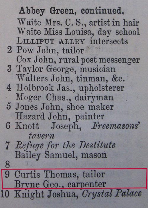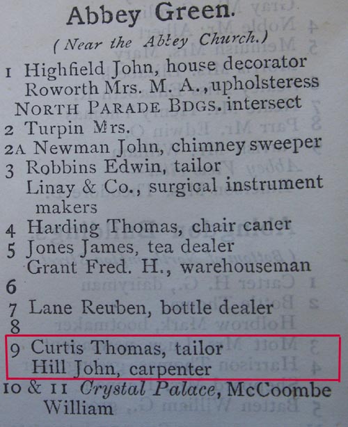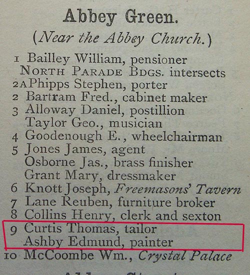 1861 Census shows Thomas Curtis as a Taylor at 9 Abbey Green |